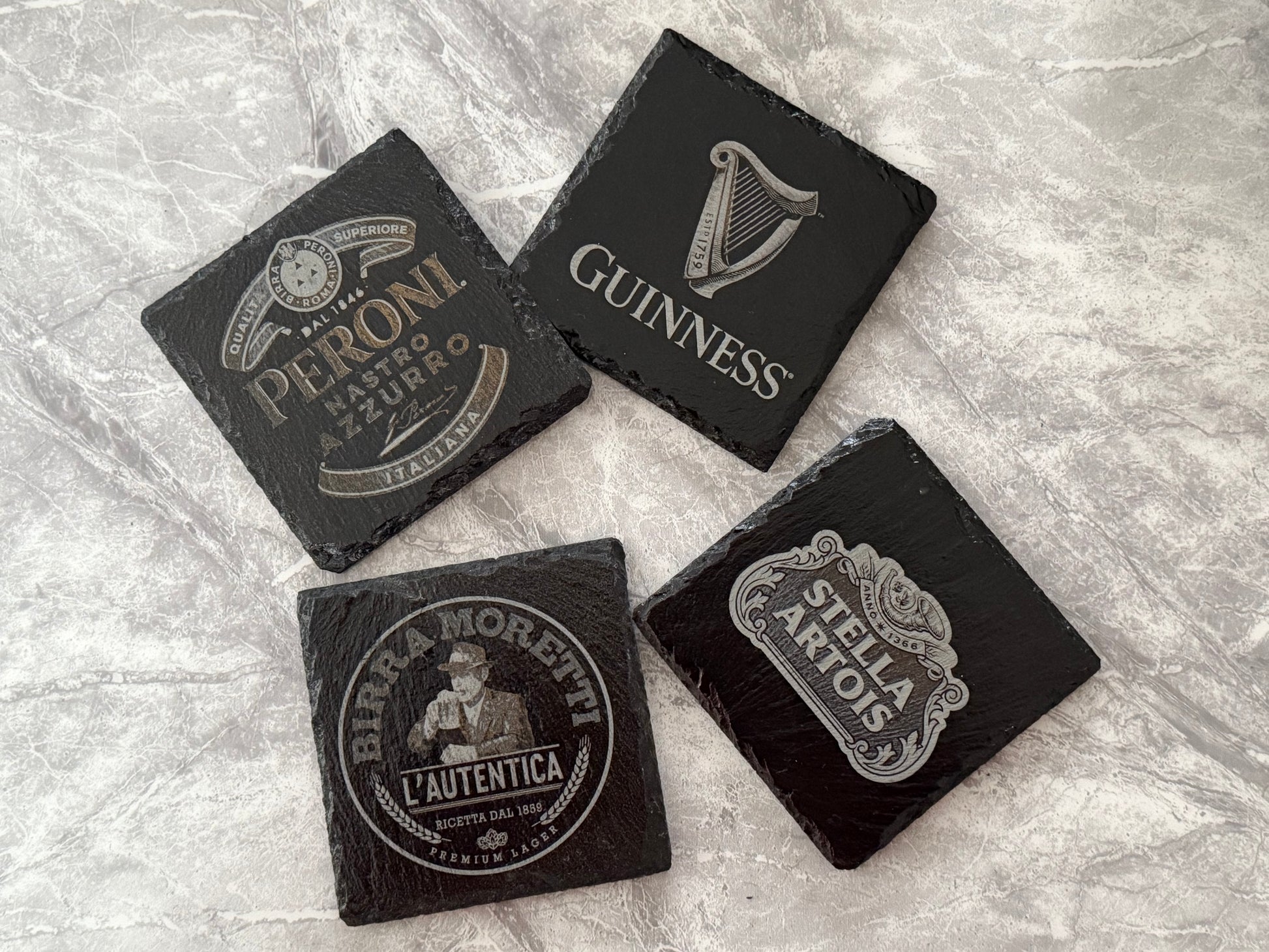 Set of 4 Iconic Beer Mats – Peroni, Birra Moretti, Guinness, Stella Artois, Beers of the World